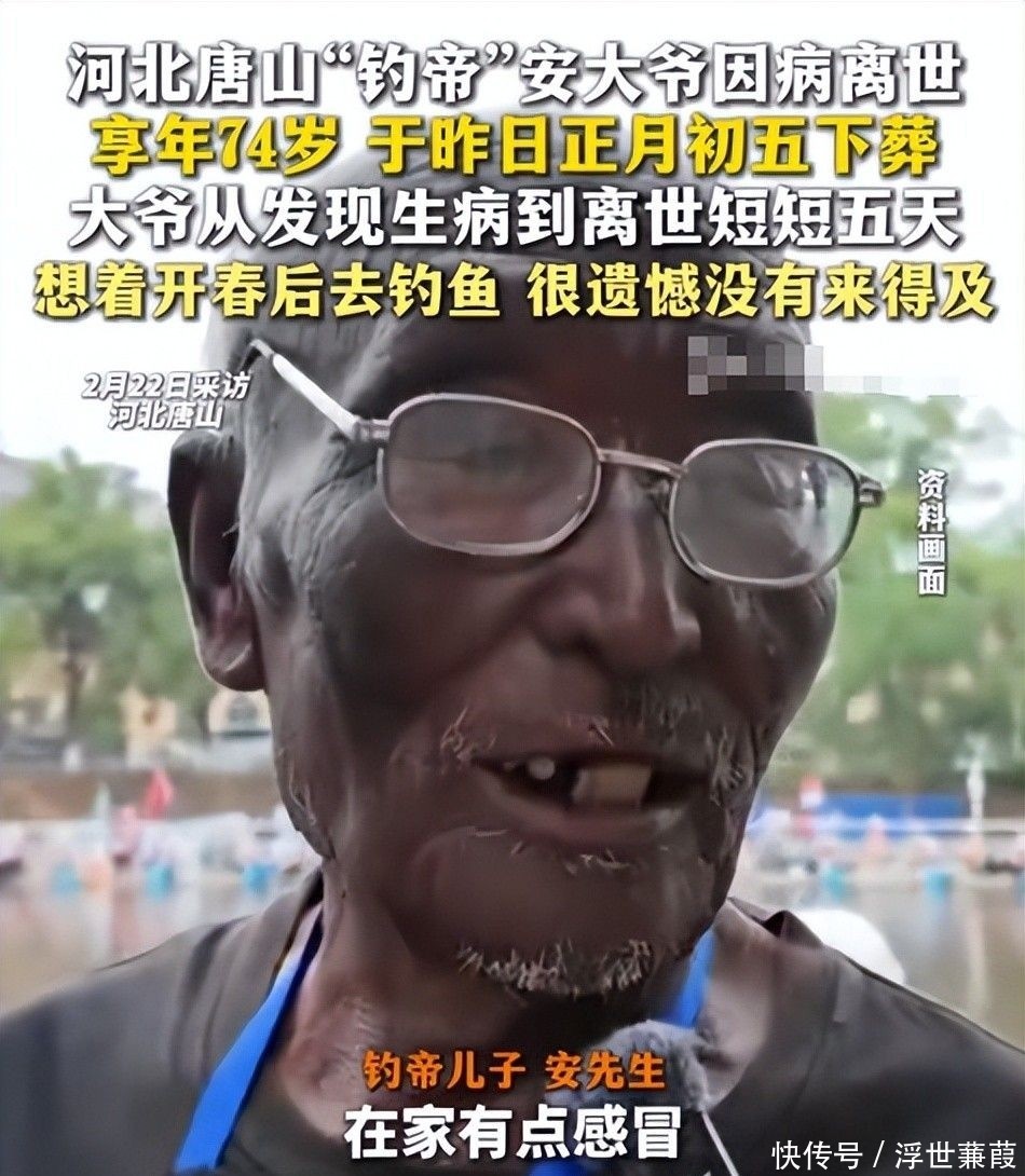 “钓帝”离世最先让普通网友破防的,是河北唐山那位家喻户晓的“钓帝”安大爷。