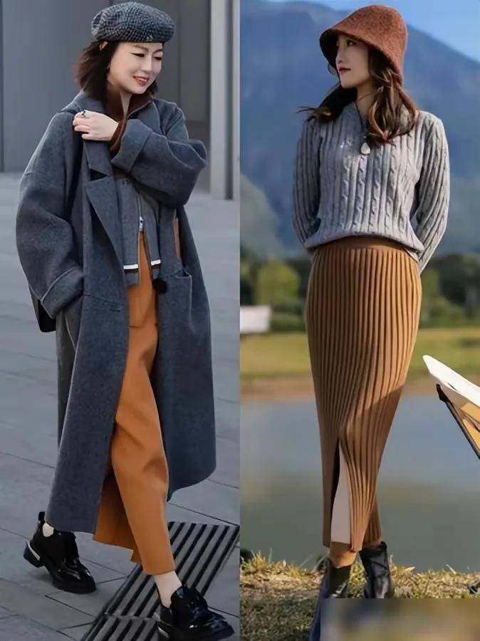 咱们看下面这两位素人的穿衣造型,还蛮有意思的,年龄都是属于奔三奔四这个阶段,但他们的穿衣打扮都很有自己的特点,比如说第一套用的就是一件最为基础的灰色大衣外套,搭配上大地色的半身裙,脚踩双黑色皮鞋,头上戴的款,我色贝雷帽,这样的穿衣造型显得年轻,而且有活力。