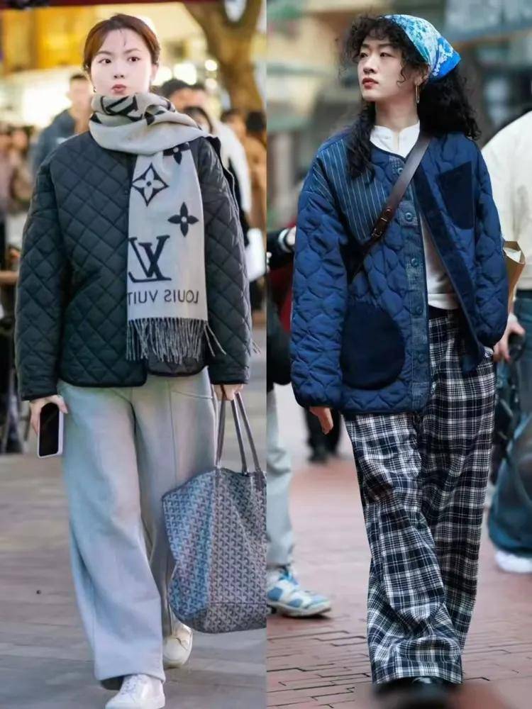 在穿衣打扮中,色彩的搭配很关键,能影响整套穿衣造型的档次。正常情况下来说,还是推荐大家选择浅色系,纯色系的衣服来组合,避免一些花哨的衣服单品来搭配。普通大众很难驾驭,例如下面右边的这一件蓝色的羽绒服搭配上格纹的阔腿长裤,我们也看图片,可能显得蛮个性的,看放在现实生活中,我们普通大众女性穿的肯定没有这种效果。